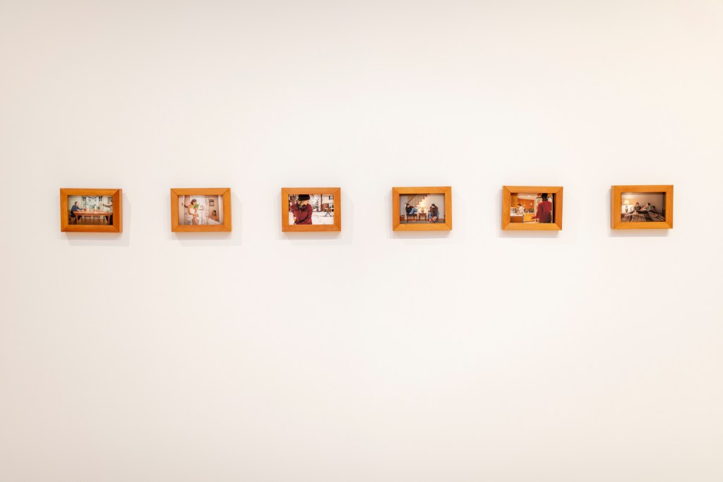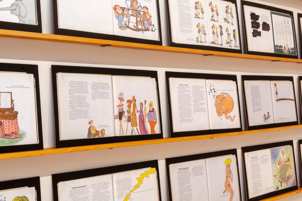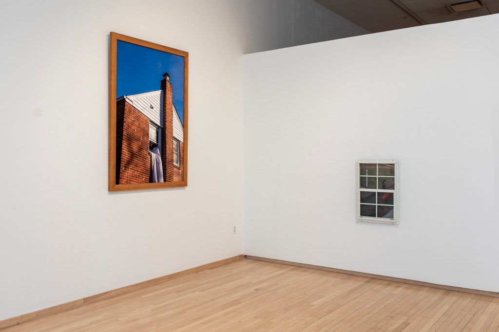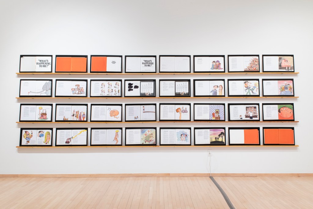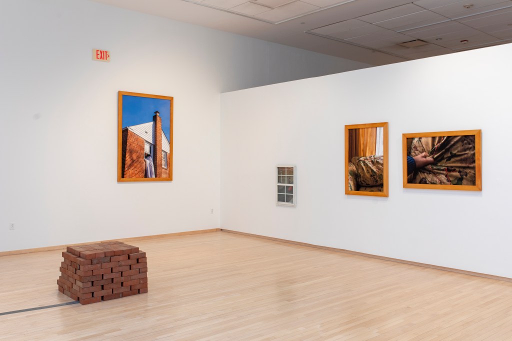 The images portray both a physical and ideological space, exploring the tensions within its structures and the subtle ways objects disrupt or redefine those boundaries. The deconstruction of What’s Happening to Me? By Pete Mayle exposes how these expectations are introduced in childhood, embedding conventional ideas of gender and sexuality long before they are understood. A video work shows the repetitive act of moving bricks from one pile to another, a gesture that speaks to reconstructing the foundations of identity and space.
